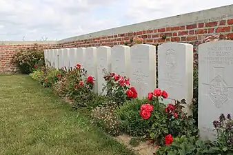 Tombes de trois soldats du Dorset Regiment tombés le 1er octobre 1918.