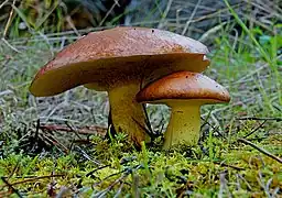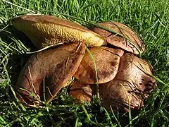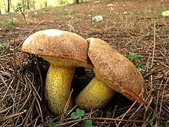 Suillus granulatus est parfois aussi nommé à tort "Cèpe des pins", mais le Cèpe des pins est une tout autre espèce ; Boletus pinophilus.