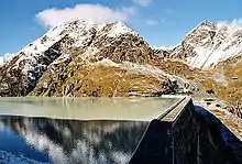 La Suisse, selon un rapport officiel de 2007[36], est un pays notablement exposé aux conséquences du changement climatique, en raison de l'importance de ses glaciers, lesquels reculent et vont encore reculer et peut-être disparaître d'ici 100 ans[37]. Le risque d'inondation, coulée de boue, glissement de terrain ou chute de pierre augmente. Des cartes de danger ont été établies (fin 2007) pour 30 % du territoire. Le nombre de jours de canicule (température> 30 °C) a fortement augmenté[38], passant au Tessin d'une moyenne d'un à deux jours par an dans les années 1960 à presque 15 aujourd'hui. De même sur le plateau, avec une augmentation encore plus forte à Zurich et à Genève (quatre fois plus de jours de canicule depuis les années 1960). Les hivers se réchauffent aussi, avec moins de jours d'enneigement, surtout à moins de 1 500 mètres. Les chutes de neige sont plus tardives, y compris à haute altitude, ce qui peut avoir un impact sur le tourisme et les sports d'hiver (en 2019, 50 % environ des pistes ont dû recevoir un enneigement artificiel qui n'est pas sans conséquences sur la gestion de l'eau).