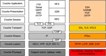 Le schéma qui suit essaie de montrer où se situent divers protocoles dans le modèle OSI de l'ISO :