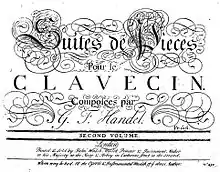 Ce recueil intitulé « Suites de pièces pour le clavecin composées par G. F. Haendel. Second Volume » de Haendel est imprimé à Londres en 1733 par son éditeur John Walsh (suite du recueil du même nom publié en 1720).
