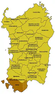Localisation du Sulcis (en marron) en Sardaigne.