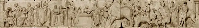 - Un tel sacrifice, effectué par l'empereur Trajan, est décrit sur la colonne Trajane