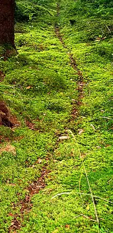 Carte schématique d'une partie de la supercolonie de Formica paralugubris (station de Chalet à Roch, Le Brassus, Massif du Jura, Suisse, Altitude : 1450 m). Cette carte reflète les principes de la supercolonie mais pas l'emplacement exact des fourmilières.