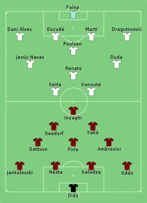 L'AC Milan a remporté pour la cinquième fois de son histoire la Supercoupe, grâce à des buts de Filippo Inzaghi, Marek Jankulovski et Kaká. Séville avait pourtant ouvert le score en première période par l'intermédiaire de Renato (14e minute).