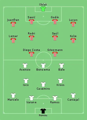 L'Atlético de Madrid remporte sa troisième Supercoupe en battant le Real Madrid après prolongation sur le score de 4 buts à 2. Le Real Madrid, vainqueur à quatre reprises de l'épreuve, perd ainsi sa troisième finale de Supercoupe d'Europe.