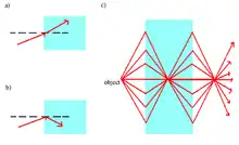Les superlentilles utilisent les propriétés des métamatériaux à indice de réfraction négatif (en) qui, grâce à leur permittivité diélectrique et leur perméabilité magnétique négatives vont réfracter la lumière dans la direction opposée de la réfraction classique[2].