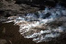 La menace des feux de friches ne cesse pas après le passage des flammes, car les combustibles lourds qui couvent peuvent continuer à brûler inaperçus pendant des jours après le feu[16]. C'est au cours de cette phase que la zone extérieur de feu, ou la zone de feu complète est refroidie afin de ne pas rallumer un autre feu.