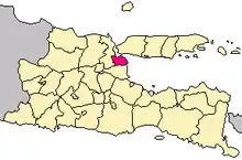 Surabaya (Soerabaja avec la graphie néerlandaise jusqu'en 1947, Surabaja avec l'orthographe soewandi[Quoi ?] de 1947 à 1972) est une ville d'Indonésie. C'est la deuxième plus grande ville du pays (après Jakarta, la capitale) avec une population de plus de 3,1 millions d'habitants (5,6 millions dans la métropole urbaine). C'est la capitale de la province de Java oriental. Située sur la côte nord de Java (le Pasisir) à l'embouchure de la rivière Mas (en) (Kali Mas) et le long du détroit de Madura. Sa superficie est de 326 km².