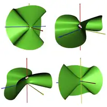 Quelques exemples de ces surfaces pour . Axes: x=rouge, y=jaunes, z=bleu
