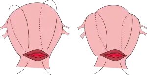Une suture avec des fils résorbables peut être laissée sur place, et ne générerait pas de problèmes avec les grossesses futures[7].
