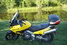 D'un premier coup d’œil, son échappement permet de la différencier de la 650 V-Strom puisqu'il se termine par deux pots placés symétriquement à l'arrière en haut.