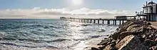 En 1914, la construction d'une jetée métallique débute, visant à remplacer celle en bois. Elle est interrompue par les débuts de la Première Guerre mondiale. Swakopmund, attaquée par la marine britannique, est évacuée.