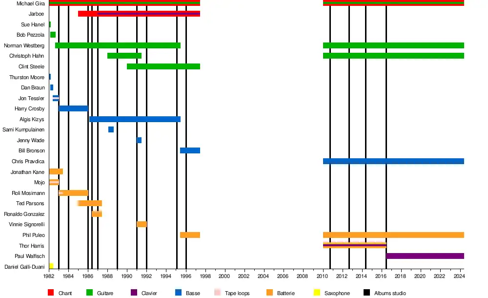 - Michael Gira – guitare, chant (1982–1997, depuis 2010)