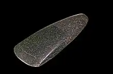 En 1973, une lame de hache en jadéite a été découverte près de la piste. Son bon état et sa réalisation dans un matériau précieux suggèrent qu'il s'agissait d'une hache symbolique[33] correspondant à une offrande[34]. La datation au radiocarbone de la tourbe dans laquelle la hache a été découverte indique qu'elle a été déposée vers 3200 av. J.-C.[35]. Le reste du matériel archéologique en bois trouvé sur le site comprend des pagaies, un plat, des flèches, des éléments de quatre arcs en noisetier, une hache de lancer, des épingles en if, des bâtons à creuser, une houe, un peigne et un fragment de cuillère. Des objets en silex (éclats, pointes de flèches, hache ébréchée) ont également été découverts[36].