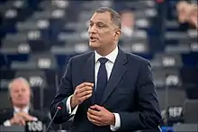 En 2016, il attire l'attention des médias en mimant un geste de masturbation au sein du Parlement européen, vraisemblablement pour marquer sa désapprobation envers son collègue Guy Verhofstadt[3].