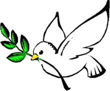 La colombe tenant un rameau d’olivier est mentionnée dans le récit du Déluge dans la Bible, où Noé, voulant s’assurer de la fin du déluge, envoie une colombe qui revient tenant dans son bec un rameau d’olivier[4],[5].
