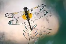 Un sympétrum jaune d'or (Sympetrum flaveolum) dans la région de Kiev (Ukraine).