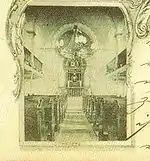 Il ne reste à ce jour que deux représentations iconographiques montrant l'intérieur de la synagogue. En se basant sur ces photos, il est possible de décrire l'intérieur: la principale salle de prière, rectangulaire, est entourée sur trois côtés par des galeries en bois réservées aux femmes, reposant sur des rangées de colonnes au chapiteau de style mauresque. L'Arche Sainte dont la forme ressemble à un arc de dentelle, est située dans une abside sur le mur oriental de la salle, dont le plafond est peint en bleu avec des étoiles pour symboliser le ciel. Devant l'Arche, se trouve la Bimah entourée d'une balustrade en bois.