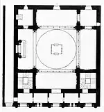 Selon le plan, la coupole est inscrite au milieu du carré central de la croix, au-dessus de l'endroit où est située la bimah[2].