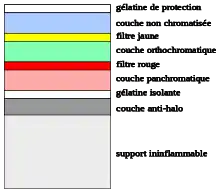 Des colorants sensibilisateurs rendent les cristaux d'argent de chacune des couches sensibles à une zone de radiations. D'autres colorants filtrent la lumière d'une couche à l'autre, et enfin, des colorants dits coupleurs vont permettre de remplacer les cristaux insolés, de chaque couche, par un colorant, au cours d'une opération chimique appelée développement chromogène.