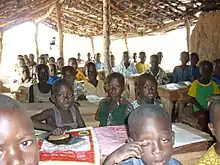 En outre, des cantines scolaires soulagent les enfants dont les résidences sont éloignées des écoles. Dans les régions peu scolarisées du Nord et du Nord-Est du pays il a été suscité des Comités pour la promotion de l’éducation de base (COPEB) dont la vocation est d’assurer la sensibilisation des parents pour la scolarisation de tous les enfants, y compris les petites filles. Les COPEB contribuent au maintien à l’école des filles. Ces comités œuvrent également à la mobilisation des populations villageoises pour la gestion et à la réhabilitation des édifices scolaires. Ils favorisent la création de coopératives agricoles pour générer des produits alimentaires autour de l’école et des ressources financières permettant de soutenir les cantines scolaires ainsi que les activités liées à la vie de l’école[31].