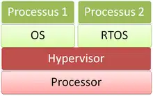 L’intérêt de la virtualisation est aussi de faire cohabiter deux systèmes d'exploitation différents (temps-réel inclus) sur le même processeur et fournissant donc à chaque processus les spécifications requises à l’exécution de leur tâche[14].