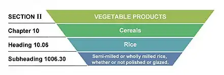 Les deux chiffres suivant désignent le titre. Le titre 10.06 (titre 06 du chapitre 10) désigne le « Riz ».