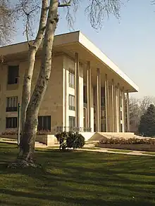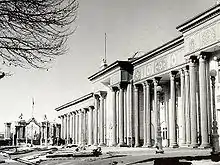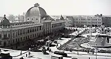 Avec la prise de pouvoir de Reza Shah Pahlavi en 1925, l'État devient un acteur majeur de l'architecture de Téhéran, dont la modernisation fait partie intégrante du programme voulu par le nouveau roi pour son pays[22]. Les murailles construites par Nasseredin Shah sont détruites en 1932, laissant la place à des larges boulevards rectilignes ; une seule des portes subsiste à ce jour. Reza Shah fait appel à des architectes iraniens et étrangers pour construire de nombreux bâtiments officiels pendant les années 1930. On peut citer Nikolaï Markov qui construit le lycée Alborz, André Godard qui construit le Musée national d'Iran, Maxime Siroux pour certaines facultés de l'Université de Téhéran, Mohsen Forughi pour la Bank-e Melli et la faculté de Droit de l'université de Téhéran, Vartan Avanessian pour le complexe d'appartements Reza Shah et l'école pour orphelins Vartan[22]. De nombreux bâtiments étatiques nouveaux voient alors le jour : la poste, le bureau de télégraphe, le bureau de police, le ministère des Affaires étrangères, la gare de Téhéran, etc.
