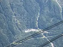 La première section du téléférique vu depuis la gare de la Para en 2023.
