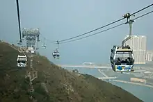 On trouve aussi des téléphériques évoluant en milieu urbain, pour la desserte d'un territoire communal isolé. À New York, par exemple, le double téléphérique monovoie Roosevelt Island Tramway relie Manhattan à Roosevelt Island, surplombant l'East River[28]. Si l'appareil de New York fait partie prenante du réseau de transport de l'agglomération, beaucoup de villes disposent également de téléphérique d'agrément dont la vocation est de desservir de façon ludique un point touristique. À Barcelone, un téléphérique survole le vieux port en reliant la colline de Montjuïc aux plages de Barceloneta. Le Téléphérique de Madrid permet d'atteindre le centre d'un parc isolé. À Grenoble des cabines en forme de bulles desservent le site de la Bastille. À Toulon le téléphérique du mont Faron dessert le quartier de Siblas (Toulon Nord) jusqu'au sommet du Mont Faron. À Huy (Belgique), le téléphérique des Vallées survole la ville et son fort. À Brest un téléphérique permet de relier les deux rives de la rivière Penfeld.
