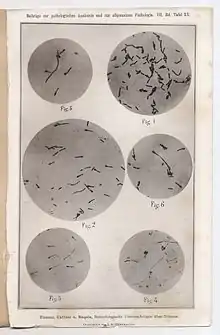 La même année, Arthur Nicolaier fait de même chez le lapin et le cobaye en inoculant, sous leur peau, des terres de rues ou de jardins. Dans le pus des abcès provoqués, il décèle des bacilles allongés, de nature anaérobie, qu'il décrit comme l'agent spécifique du tétanos. Il ne les retrouve pas dans le tissu nerveux, renforçant l'idée que le tétanos est dû à un poison lié à une infection bactérienne locale (toxi-infection).