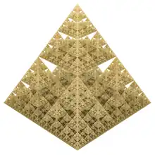 Le tétraèdre fractal est l'extension naturelle à la 3e dimension du triangle de Sierpinski. Il a la particularité d'avoir pour dimension 2. En conséquence, sa surface ne varie pas d'une itération à l'autre. A l'infini, sa surface est identique à celle du tétraèdre d'origine.