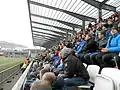 Après deux années de travaux, la construction d'une nouvelle tribune « Sud » commence, celle-ci doit comporter deux niveaux ainsi qu'un intérieur comportant des locaux. Tout d'abord, en 2011, l'ancienne tribune « Sud », tribune tubulaire, situé derrière l'un des buts, est démontée. Dès lors la construction de cette nouvelle tribune commence, les locaux sont d'abord construits puis les gradins sont construits et enfin le toit transparent de la tribune, les 898 sièges blancs sont installés et les locaux sont aménagés sur cette dernière.
