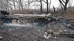 - T-80BVM (Objet 219RVM) : revalorisation de certains T-80BV russes par l'usine de chars d'Omsk (Omsktransmash) en 2021, blindage réactif explosif Relikt, canon 2A46M-4 de calibre 125 mm, viseur jour/nuit SOSNA-U pour le tireur, turbomoteur GTD-1250TF de 1 250 ch, carrousel modifié pour recevoir des obus-flèches plus longs, radio à ondes courtes R-168-25U-2, sonde aérologique DVE-BS[12].