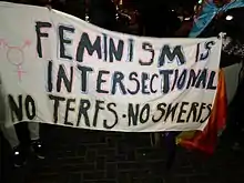 Il est depuis utilisé pour décrire les féministes qui soutiennent des positions considérées comme transphobes[6],[5],[7],[8], telles que l'opposition aux droits des personnes trans et à l'inclusion des femmes trans dans les espaces en non-mixité[9],[10],[11], les listes politiques réservées aux femmes[12], opinions généralement fondées sur le refus de considérer que les femmes trans sont des femmes[10].
