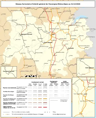 | Réseaux connexes | TGV Intercités Cars Région Principaux réseaux urbains : Aix-les-Bains (Ondéa) Annecy (SIBRA) Bourg-en-Bresse (RUBIS) Chambéry (Synchro Bus) Clermont-Ferrand (T2C) Évian-les-Bains (ÉVA'D) Genève, CH (TPG) Grenoble (TAG) Lyon (TCL) Montluçon (Maelis) Moulins (Aléo) Oyonnax (Duobus) Le Puy-en-Velay (Tudip) Roanne (STAR) Saint-Étienne (STAS) Thonon-les-Bains (STAR'T) Valence (Citéa) Vichy (MobiVie) |
