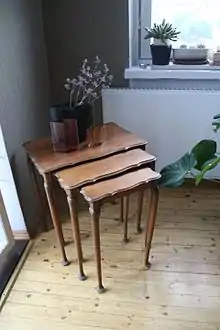 Les tables gigognes sont des tables de même style mais de tailles différentes permettant ainsi de les ranger en les imbriquant les unes en dessous des autres à la manière de poupées russes.
