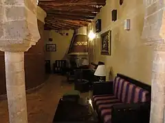 Le tadelakt ou tadellakt (de l'arabe دلك masser, frotter, polir, aplanir ; son déverbal est تدلاكت)[1] est un enduit-stuc traditionnel de la culture du Maroc, et de l'artisanat marocain, lisse, doux, imperméable, fongicide, et brillant, à base de chaux de Marrakech, d'eau de chaux, et de savon noir, teinté de pigments colorés, traditionnellement utilisé pour étanchéifier les citernes d'eau, ou en artisanat d'art et arts décoratifs, pour enduire et étanchéifier des fontaines, bassins, piscines, vasques, éviers, hammams, salles de bains (douche, baignoire, lavabo...), des sols, murs, toits, et des façades, de riads, ou de palais marocain[2]...