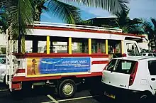 Le transport collectif traditionnel a longtemps été le truck, mot anglais désignant un camion. Ce véhicule de 3,5 tonnes dont le châssis était aménagé avec une structure en bois peinte de couleurs vives, équipée de banquettes latérales et de fenêtres en plexiglas, pouvait accueillir entre 12 et 40 passagers[15]. L'introduction de ce mode de transport remonte au milieu des années 1930 afin de remplacer les moyens de transport hippomobile[16].
