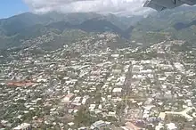 Papeete est la capitale de Tahiti et de la Polynésie française. La commune en elle-même, qui s'étend sur 19 km2, n'abrite que 26 050 habitants[9], ce qui, bien qu'elle ait la plus forte densité de population de l'île, n’en fait que la deuxième commune la plus peuplée de l'île, après Faaa.