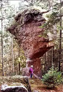 - À l'est et au sud-est, le col d'Anozel et le Kemberg accueillaient une activité minière très ancienne, en particulier productrice de cuivre. La gestion efficace, parfois sans scrupule puisque les ouvriers mineurs étaient souvent des esclaves bagnards et prisonniers de guerre aux temps mérovingiens, carolingiens et othoniens, des autorités minières a favorisé l'extension forestière, de manière à disposer à peu de frais de charbon de bois et surtout de combustibles. Il est toutefois certain que les besoins importants ont été à l'origine de plusieurs dévastations des grands bois proches.