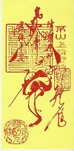 Les talismans (fu 符), habituellement utilisés en conjonction avec des incantations (zhou 咒) et des registres (lu 箓)[n 1], sont des pièces de bois ou de métal, plus récemment de papier coloré (en gén. jaune, rouge ou bleu) couverts de signes figuratifs ou de symboles abstraits, écrits à l’encre noire ou rouge[1]. Dans les milieux taoïstes, ils étaient vus comme des écrits d’origine céleste, des édits du monde spirituel ou des ordres venant d’une divinité, aptes à faire trembler les fantômes et les démons et à les maintenir sous contrôle.