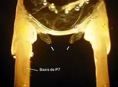 Les sexes ne sont identifiables[15] de manière certaine qu'à partir de la taille de 8,5 mm (longueur totale, de l’extrémité antérieure de la tête à la limite antérieure du telson).