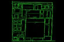 Les principales structures en termes de surface sont regroupées dans les parties nord et sud. Ces structures appelées "palais"[2], un au nord et deux au sud, sont accompagnées d'autres bâtiments utilitaires.
