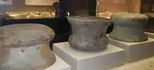 Pendant la période du Grand bond en avant entre 1958 et 1960, la majorité des objets en métal, dont les tambours de bronze ont été fondus. Des pièces datant de centaines d'années ont été détruites à cette époque[4].