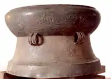 La famille des bronzes cérémoniels, vases ou urnes, cloches ou tambours, fut élaborée à partir des qualités reconnues du nouvel alliage de cuivre : beauté, sonorité, adaptabilité, solidité, pérennité sinon éternité. La fonte du bronze maîtrisée, après les pointes de flèche et les chaudrons réussis, les artisans vont développer, de fin BCE au CE, la production d‘objets cérémoniels dont la parenté est visible, qu'il s'agisse de leurs décorations ou de leurs usages, souvent musicaux. Ci-contre, comparées à un tambour vietnamien de référence (Sông Đà), des trouvailles de « cloche » et « d'urne » faites au Cambodge, ou encore de « bassine/tambour » au Vietnam, attestant d'une grande famille de bronzes cérémoniels.