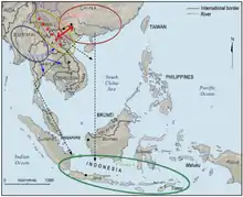 Du bassin élargi du Fleuve Rouge, entre fin BCE et début CE, puis des côtes chinoises du Guangxi ensuite, les tambours antiques furent diffusés dans la péninsule indochinoise et l'Indonésie. Les routes fluviales du Mékong et de ses affluents, puis d'autres rivières du sud, permettant de rejoindre l'actuelle Malaisie et, par les détroits, l'Indonésie, il fallait compter deux à trois mois de voyage par des voies commerciales déjà reconnues pour les bijoux et les céramiques pour les acheminer. Bientôt, les progrès de la boussole aidant, on ira directement par mer du Golfe du Tonkin (Vịnh Bắc Bộ) vers Java en moins d'un mois, selon les vents. Un millénaire plus tard, les nouveaux tambours birmans (Heger 3) ne dépasseront pas l'Indochine mais seront adoptés par tous les pays voisins. Aucun commerce de tambours n'a existé du sud vers le nord où les Pejeng et Moko indonésiens resteront inconnus.