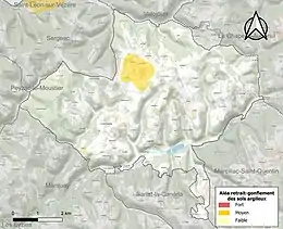 Les mouvements de terrains susceptibles de se produire sur la commune sont des tassements différentiels[39]. Le retrait-gonflement des sols argileux est susceptible d'engendrer des dommages importants aux bâtiments en cas d’alternance de périodes de sécheresse et de pluie[40]. 3,5 % de la superficie communale est en aléa moyen ou fort (58,6 % au niveau départemental et 48,5 % au niveau national métropolitain)[Carte 4]. Depuis le , en application de la loi ÉLAN, différentes contraintes s'imposent aux vendeurs, maîtres d'ouvrages ou constructeurs de biens situés dans une zone classée en aléa moyen ou fort[Note 5],[41].