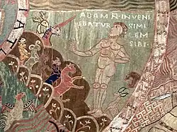 La tapisserie de la Création (Tapís de la Creació) est une œuvre de broderie de la fin du XIe siècle ou du début du XIIe[1],[2], faisant partie du trésor de la cathédrale de Gérone (Catalogne) en Espagne. Cette tapisserie mesurant environ 12 mètres carrés (3,58 x 4,50), brodée de laines de couleur, est l'un des plus remarquables vestiges de l'art textile roman. Datant du XIe siècle, elle est encore de nos jours source d'interrogation et de curiosité pour les érudits de par la richesse de sa symbolique religieuse. Elle présente en son centre le Créateur et tout autour divers moments de la création du monde : la séparation des eaux et de la terre, la création des animaux qui volent, nagent, rampent et marchent, et enfin celle de l'Homme avec Adam puis Ève. Les franges contiennent les noms et symboles des mois, sur la gauche, de février à juillet. Les quatre vents principaux sont représentés dans les quadrants autour du cercle central.